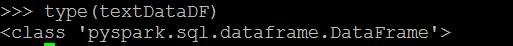 # Convert RDD to Dataframe >>> textDataDF = textDataRDD.toDF()